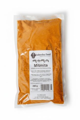 Inhaltsstoffe: Kichererbsenmehl, Berbere (Chilis, Gewürze), Knoblauch, Zwiebeln, Ingwer, Salz, Basilikum.